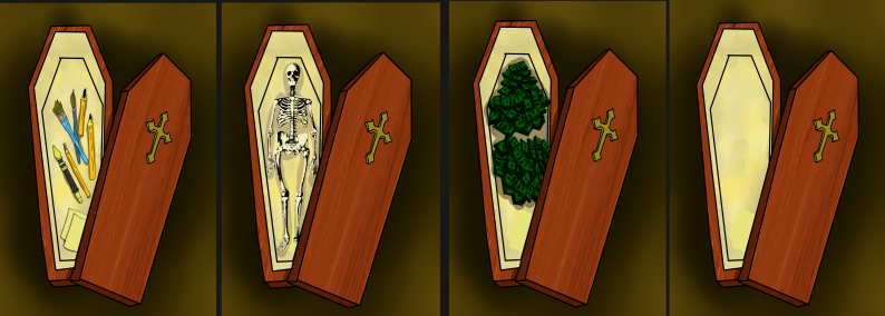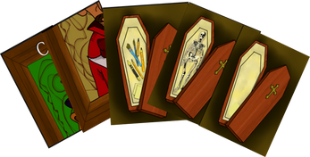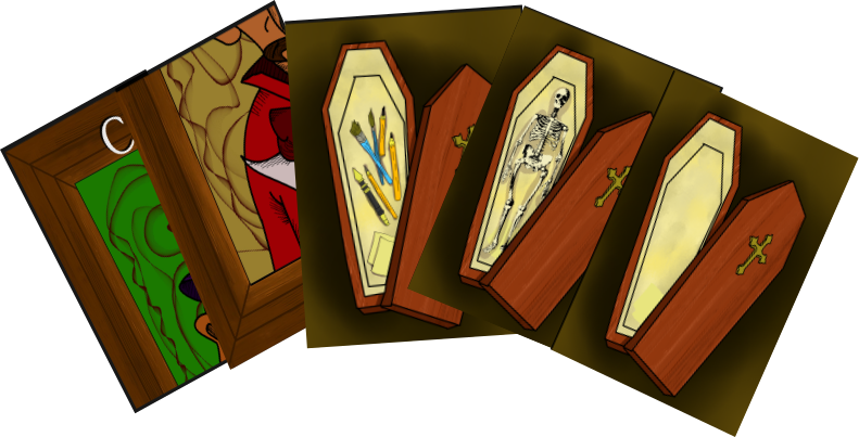 Cada jugador deberá encontrar las 4 piezas de sus personajes y sus respectivos ataúdes artísticos.